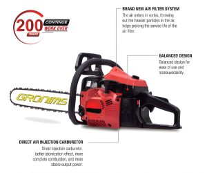 Powerful chain saw, suitable for most conditions like harvesting, forestry, agriculture and gardening. It combines rugged reliability with convenient and comfortable operation mode.