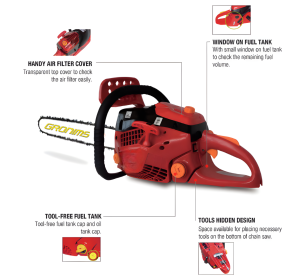 The petrol chainsaw with its powerful 2-stroke engine, is a must for any serious gardener, farmers & groundsman.This model is with easy starter.